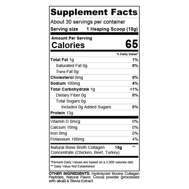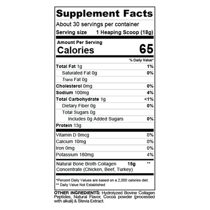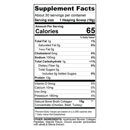 ボーンブロスは、自然由来の骨エキスを使用したサプリメントで、タイプI、II、IIIのコラーゲンを15グラム含み、関節、消化器系、免疫系の健康をサポートします。また、13グラムの高品質な動物性タンパク質と、グルコサミンやコンドロイチンを豊富に含むことで、炎症の軽減、関節や腱の健康、運動パフォーマンスの向上、筋肉回復を助けます。