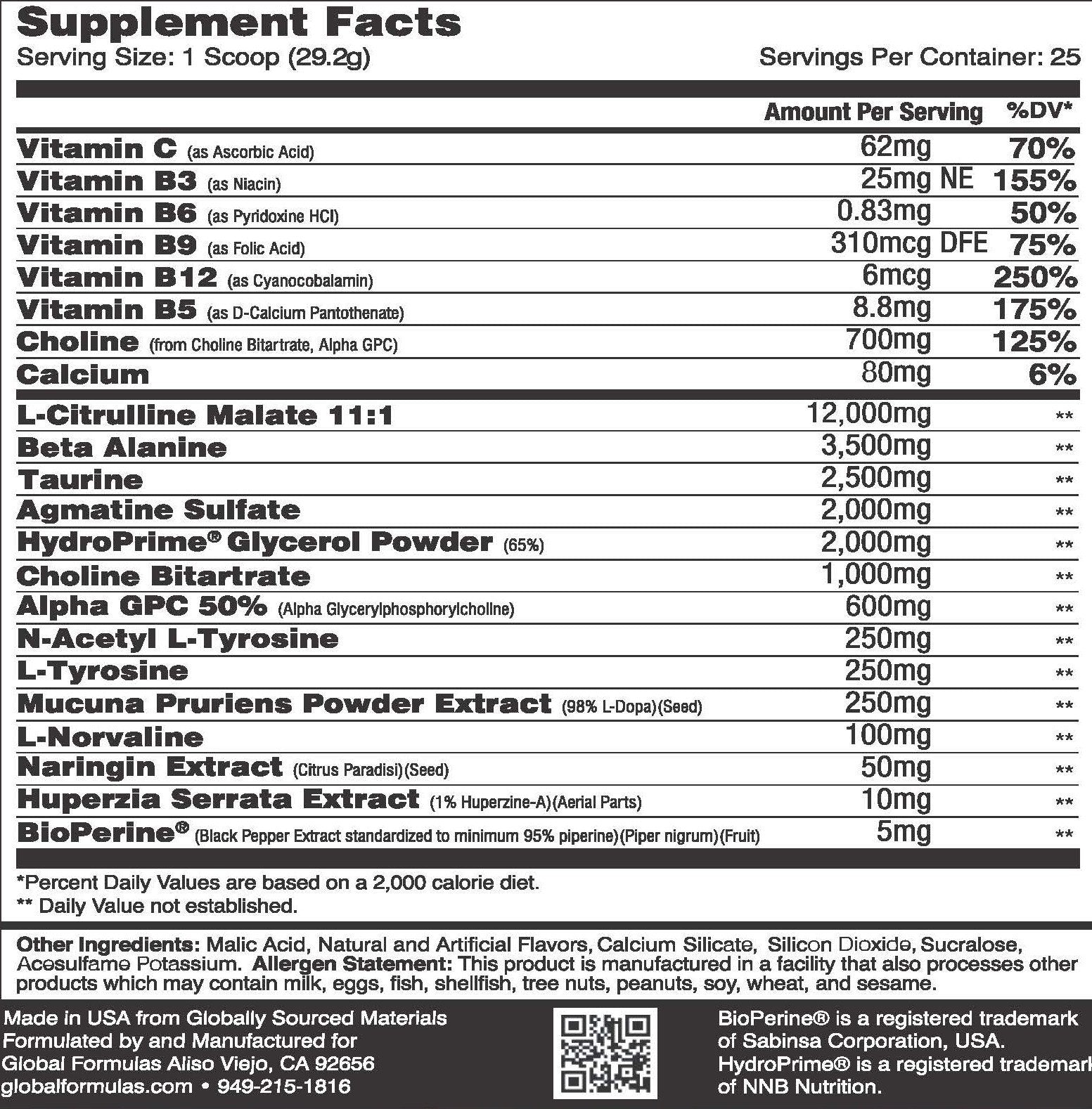 使用方法: 栄養補助食品として、1 さじを 8~12 オンスの冷水に混ぜてください。運動の 20~30 分前に摂取してください。耐性を確認するために、最初は半量から使用を開始してください。24 時間以内に 2 回分を超えて摂取しないでください。警告を読み、指示通りにのみ使用してください。製品の粘稠度を保つために、密閉して涼しく乾燥した場所または冷蔵庫に保管してください。時々固まることがありますが、製品の性能には影響しません。bioPUMP'D を bioBURN と併用すると、科学的に最も進んだ脂肪燃焼セッションを実現できます。また、bioFORCE と併用すると、純粋な筋肉量/筋力増強が実現します。最適な回復のために、bioPRO/bioREPAIR (キレート技術フォーミュラ) は、常に運動後に使用してください。