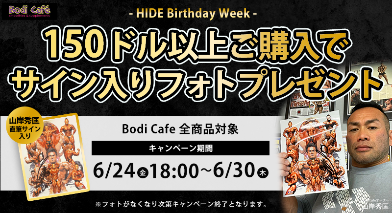 Bodicafeでは、山岸秀匡バースデイウィークキャンペーンがスタートしました🏃