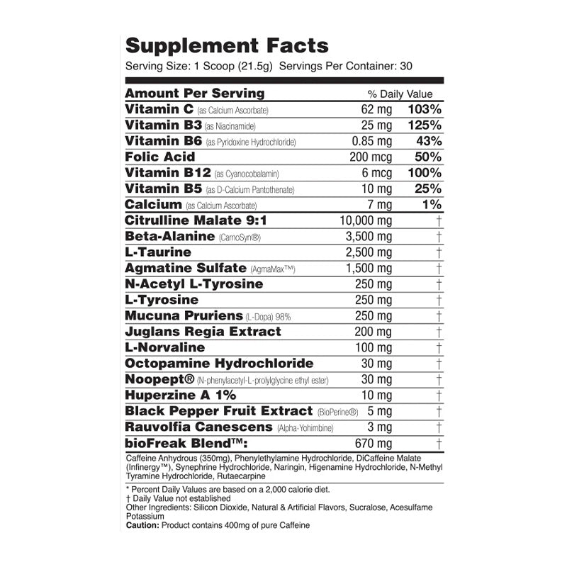 スーパーバイオ FREAK OMG は、あなたのワークアウトをこれまでに感じたことのないレベルに引き上げます。筋力、持久力、集中力の向上、ポンプ/血管の増強、そして最も過酷なワークアウトでもあなたを突き動かすノンストップのエネルギーを体験できます。