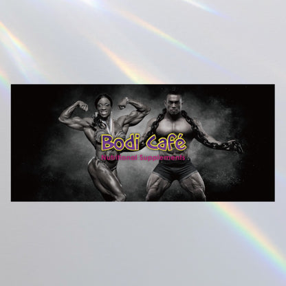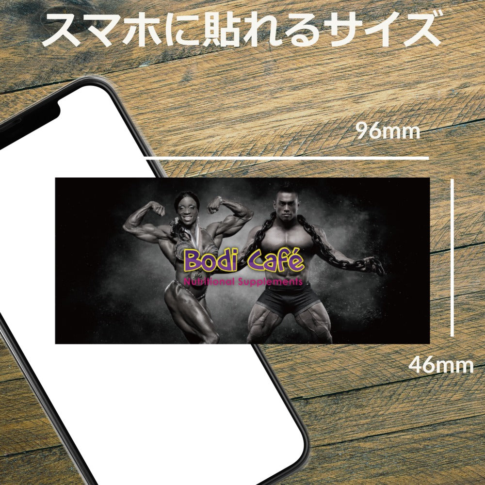 BodiCafe's original sticker is perfect for boosting motivation and can be applied to both smartphones and computers! It features two inspiring figures, bodybuilders Shujiro YamaGishi and Iris Kyle, whose powerful physiques will inspire and encourage you during your daily training and activities.