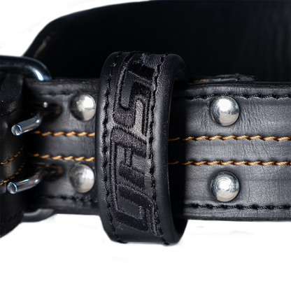 Features: Exchangeable rivets, heavy buckle with two pins, 9 prong holes for adjustable fit, centered GASP embroidery back