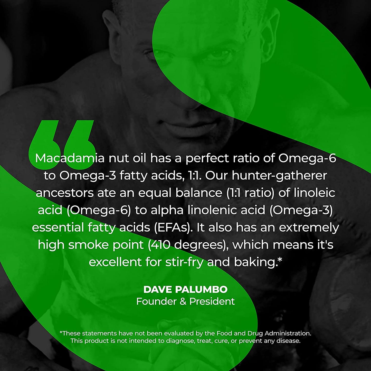 This Macadamia Nut Oil is a Must-Have Essential Fatty Acid for Your Diet! It's a healthy oil that's indispensable in your daily life. Whether you're preparing for a contest or in the off-season, it's an oil that should be consumed year-round. Take one tablespoon in the morning and one at night!